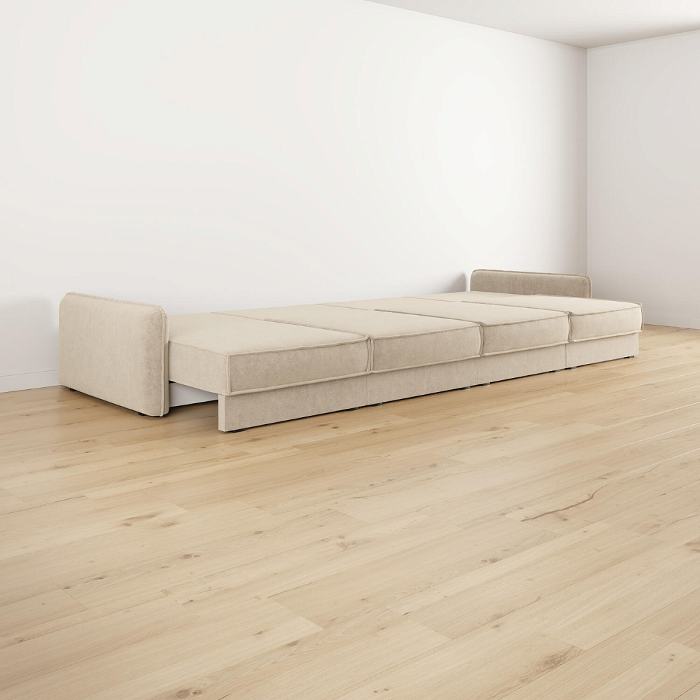 - Размер спального места — 400 х 167 см. Диван легко трансформируется в полноценное спальное место для сна и отдыха двух человек.