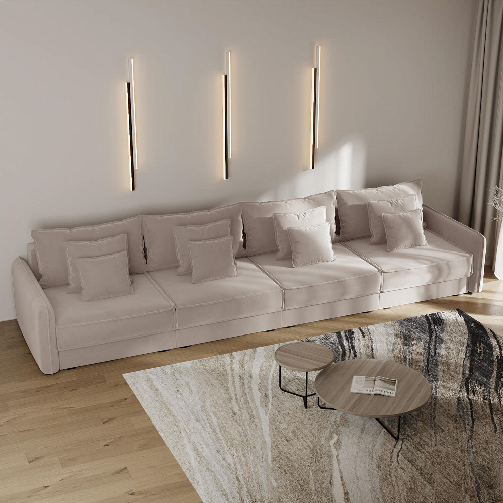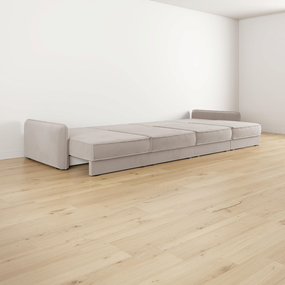 - Размер спального места — 400 х 167 см. Диван легко трансформируется в полноценное спальное место для сна и отдыха двух человек.