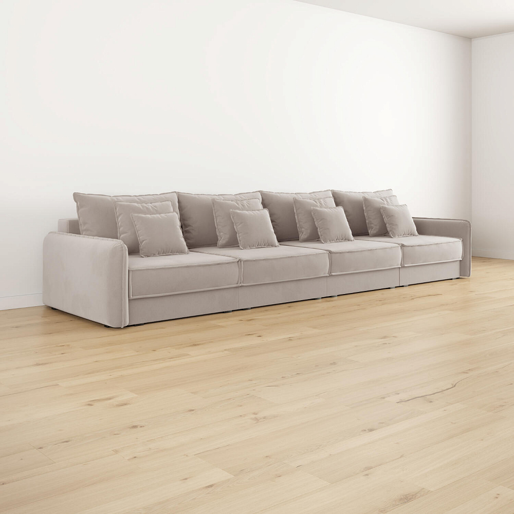 - 12 подушек в комплекте. 4 приспинных и 8 декоративных подушек разных размеров позволят скорректировать глубину посадки.