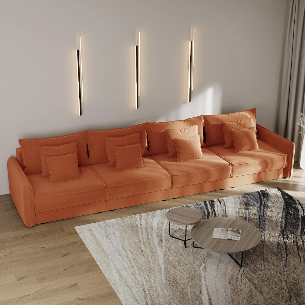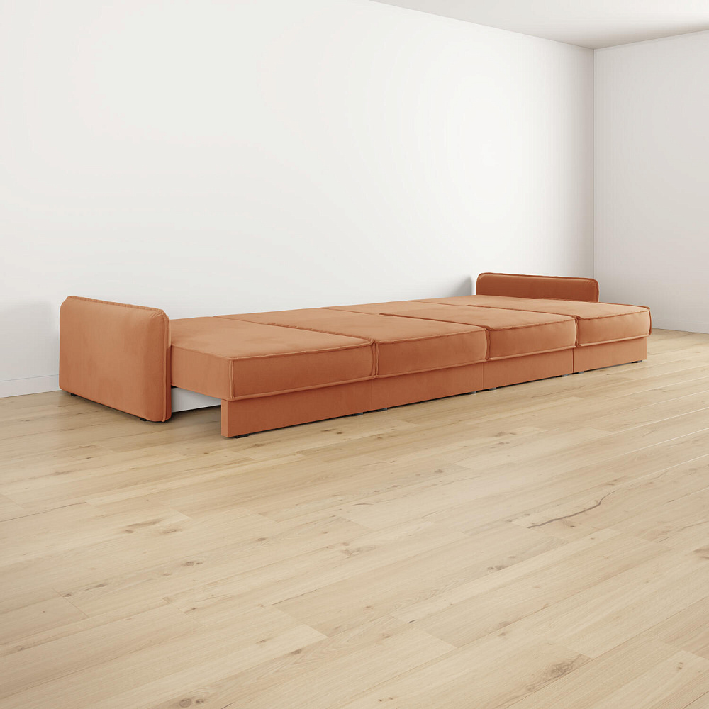 - Размер спального места — 400 х 167 см. Диван легко трансформируется в полноценное спальное место для сна и отдыха двух человек.