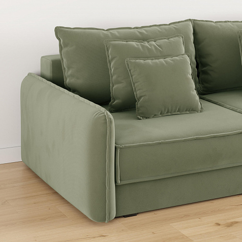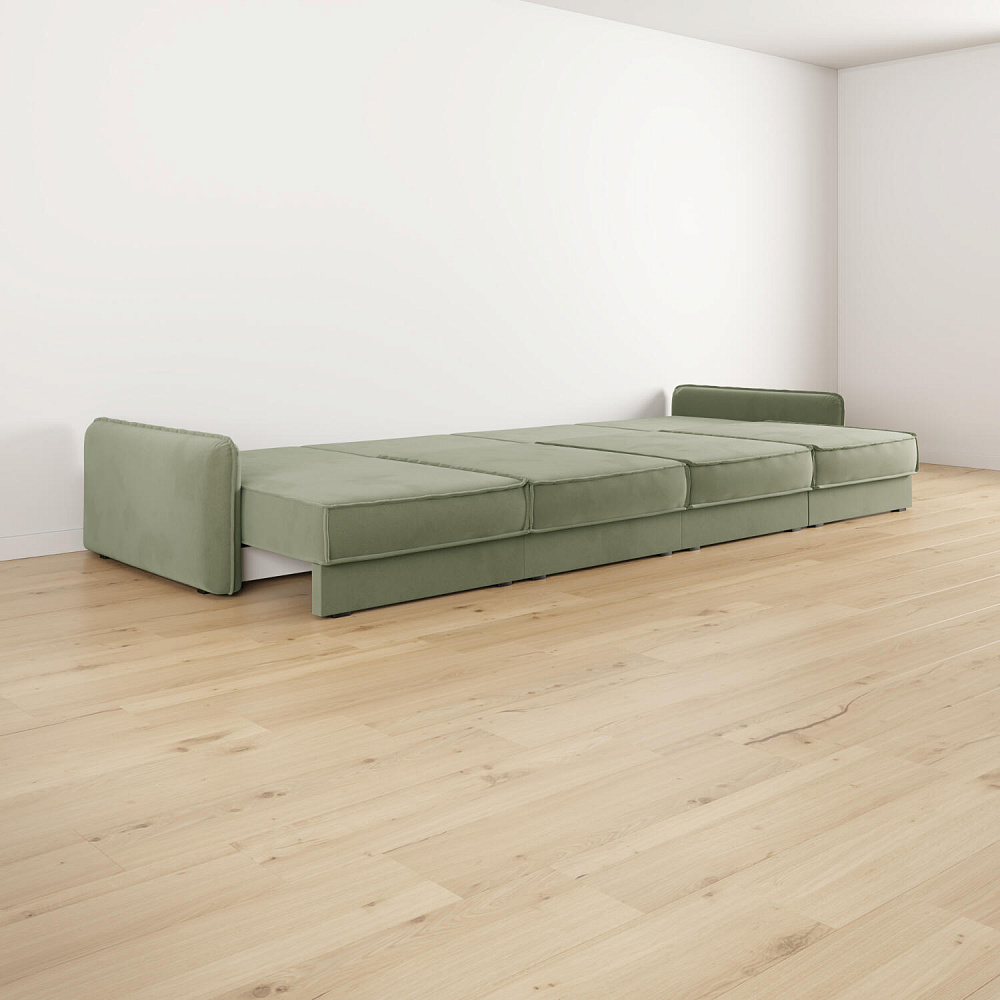 - Размер спального места — 400 х 167 см. Диван легко трансформируется в полноценное спальное место для сна и отдыха двух человек.
