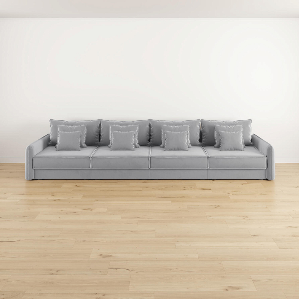 - 12 подушек в комплекте. 4 приспинных и 8 декоративных подушек разных размеров позволят скорректировать глубину посадки.