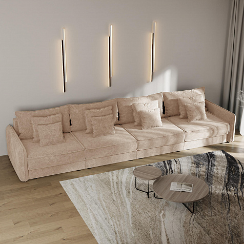 - 12 подушек в комплекте. 4 приспинных и 8 декоративных подушек разных размеров позволят скорректировать глубину посадки.