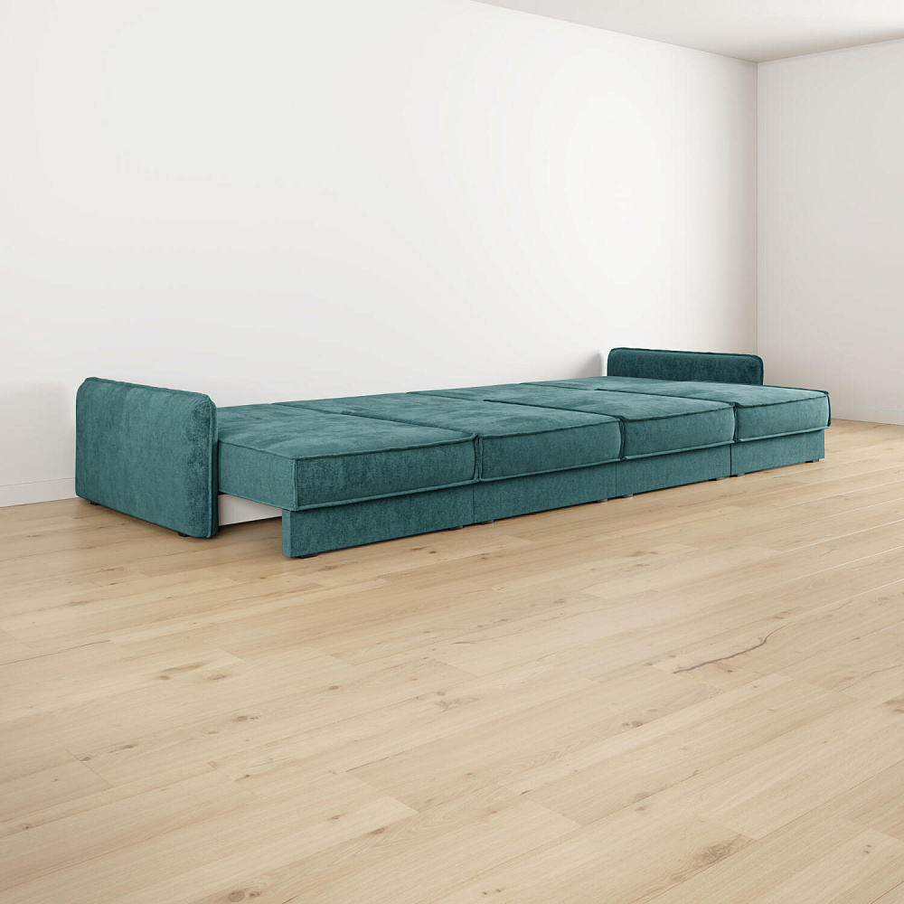- Размер спального места — 400 х 167 см. Диван легко трансформируется в полноценное спальное место для сна и отдыха двух человек.