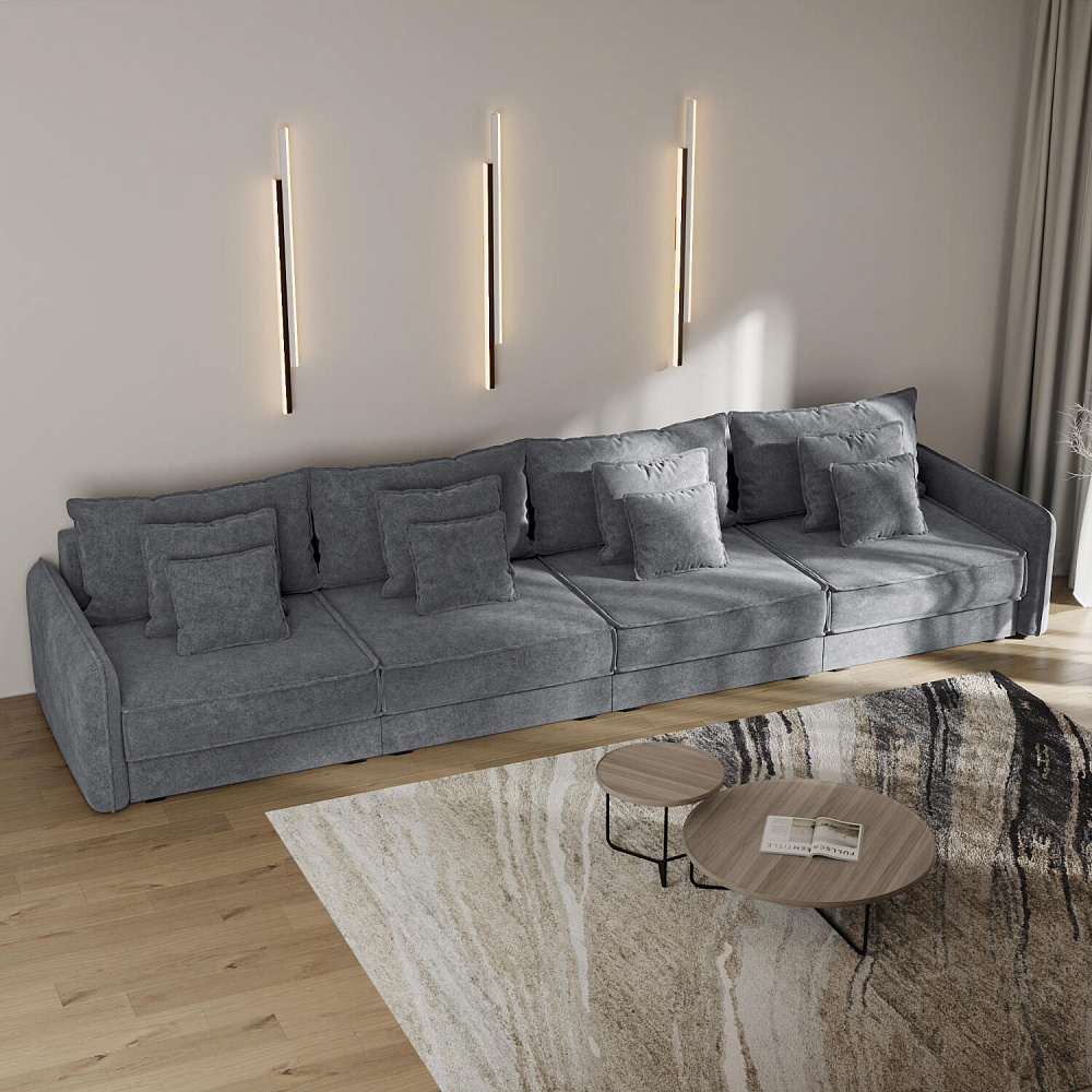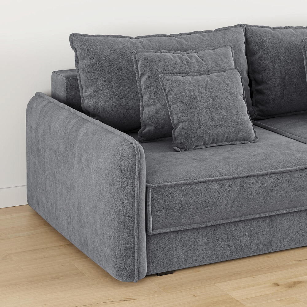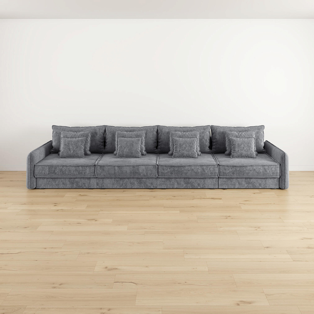 - 12 подушек в комплекте. 4 приспинных и 8 декоративных подушек разных размеров позволят скорректировать глубину посадки.