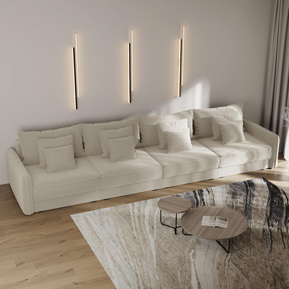 - 12 подушек в комплекте. 4 приспинных и 8 декоративных подушек разных размеров позволят скорректировать глубину посадки.