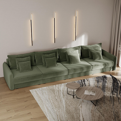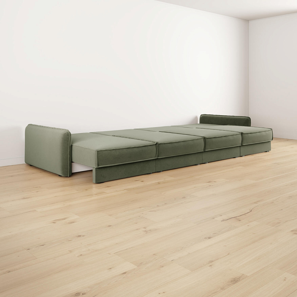 - Размер спального места — 400 х 167 см. Диван легко трансформируется в полноценное спальное место для сна и отдыха двух человек.