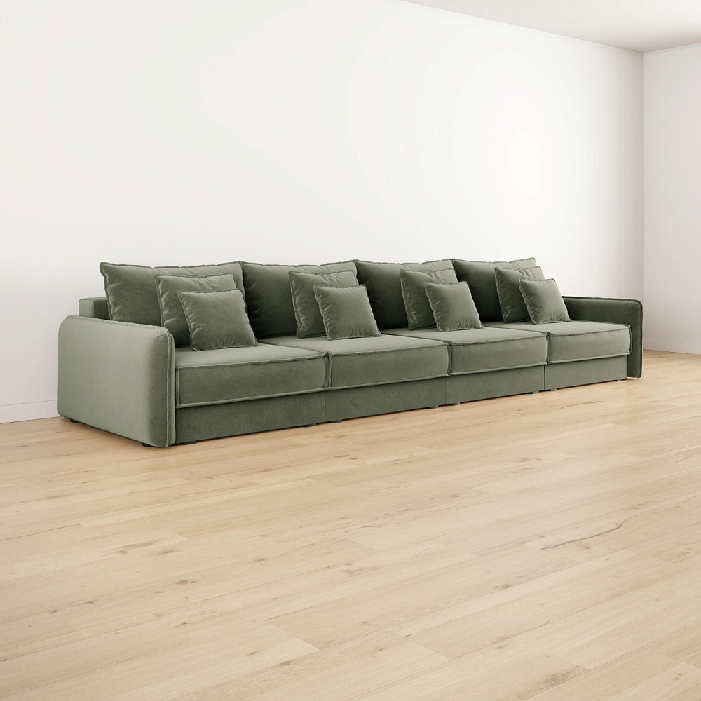 - 12 подушек в комплекте. 4 приспинных и 8 декоративных подушек разных размеров позволят скорректировать глубину посадки.