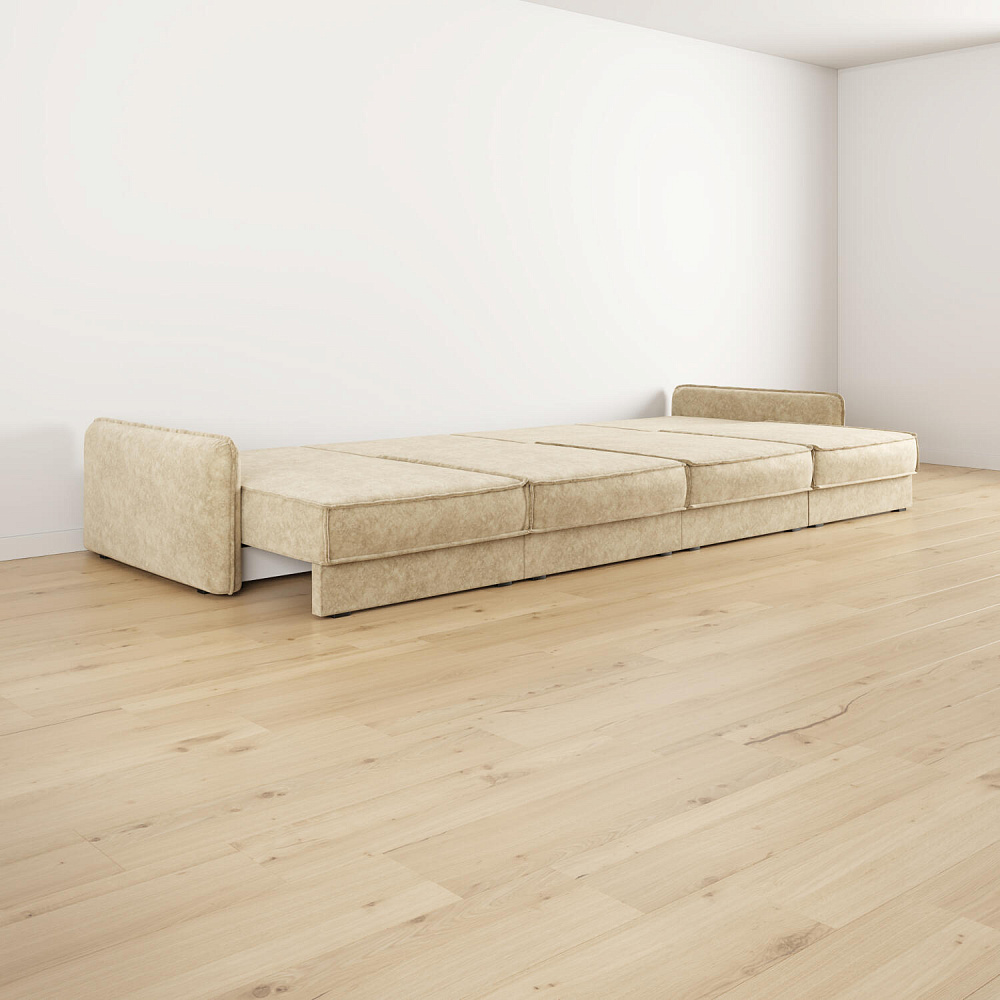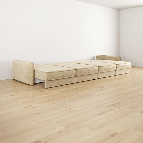 - Размер спального места — 400 х 167 см. Диван легко трансформируется в полноценное спальное место для сна и отдыха двух человек.
