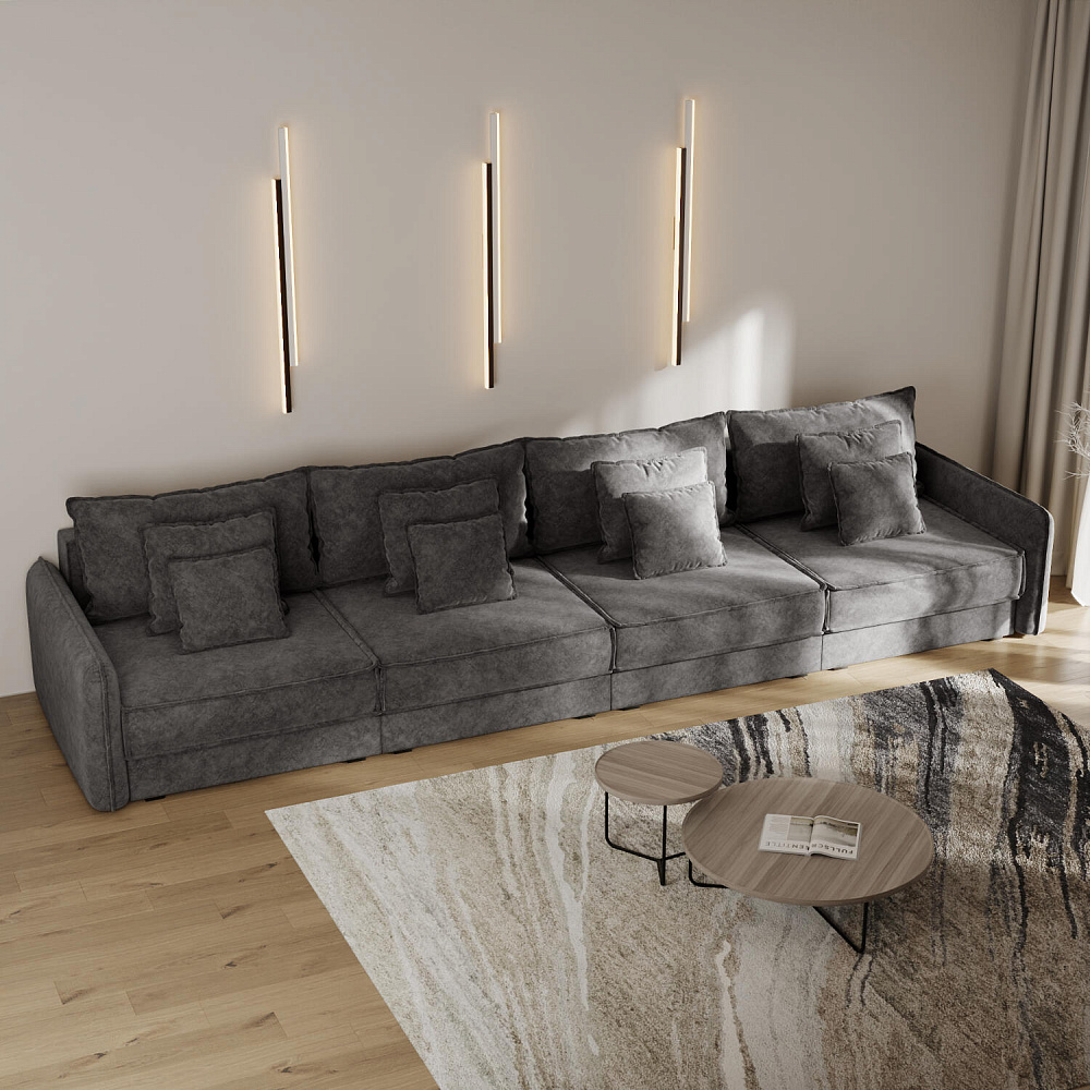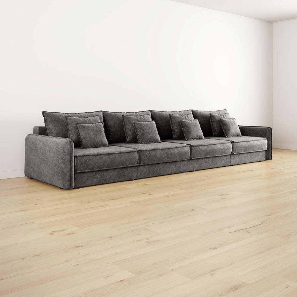 - 12 подушек в комплекте. 4 приспинных и 8 декоративных подушек разных размеров позволят скорректировать глубину посадки.