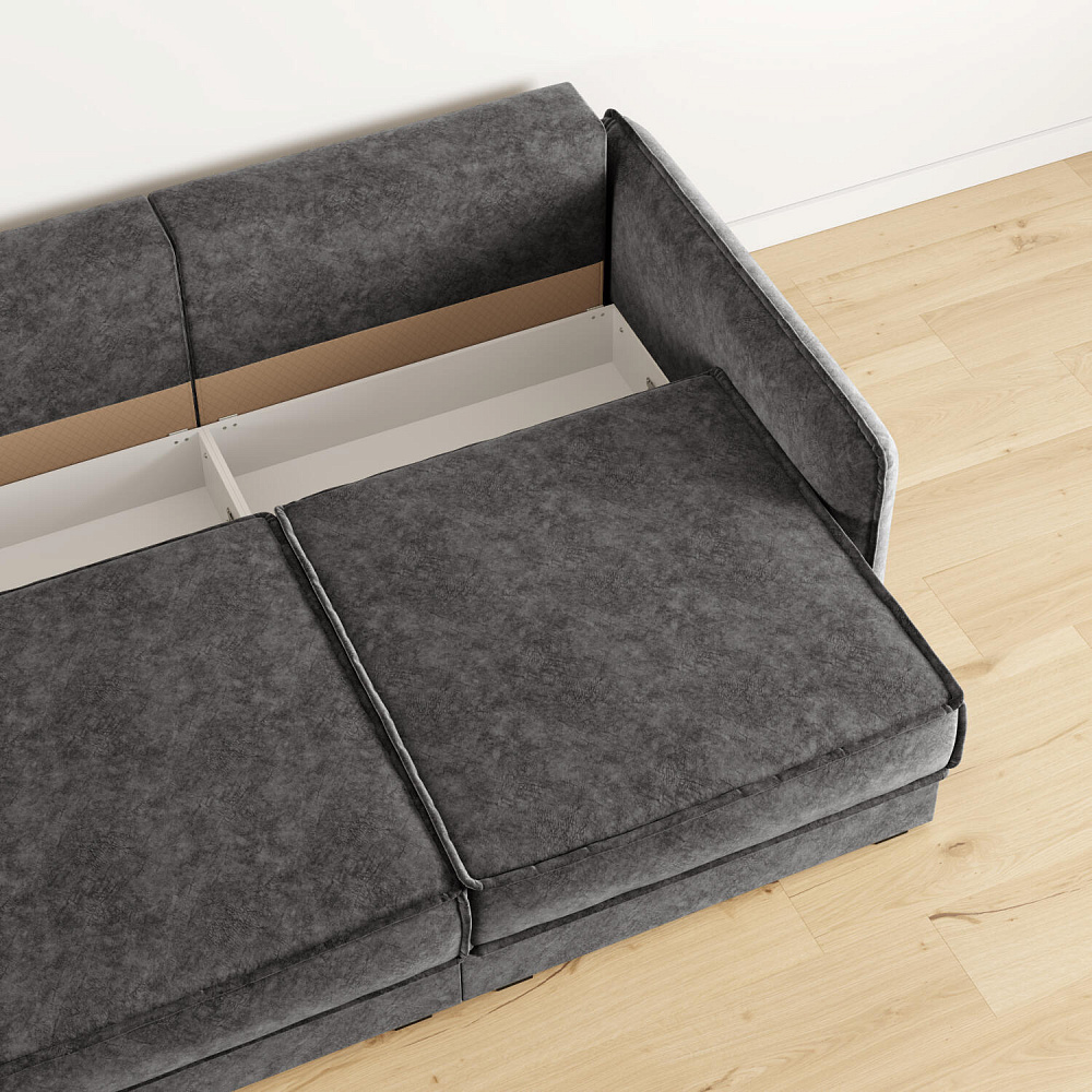 - Размер спального места — 400 х 167 см. Диван легко трансформируется в полноценное спальное место для сна и отдыха двух человек.