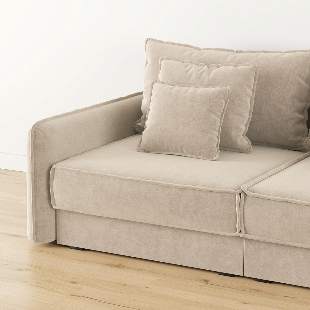 - Девять подушек в комплекте. 3 приспинных и 6 декоративных подушек разных размеров позволят скорректировать глубину посадки.