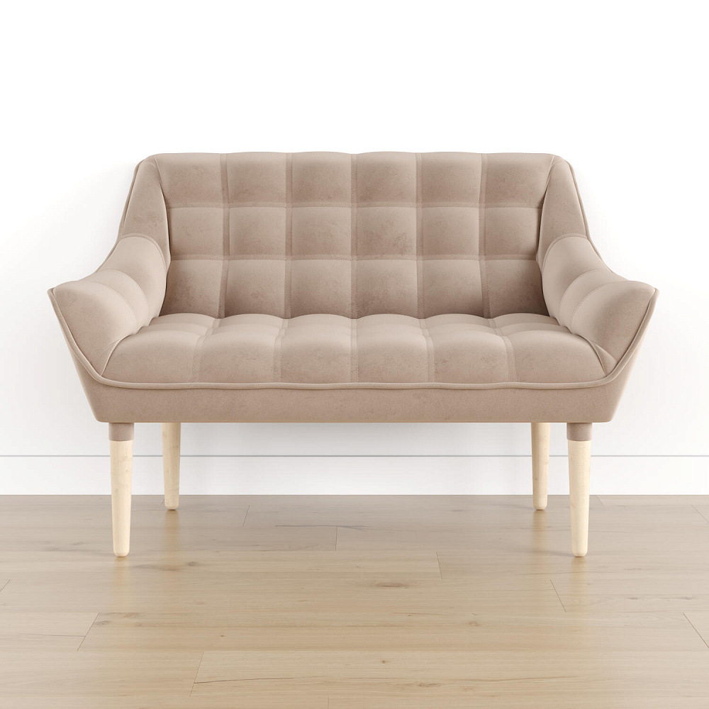 Мини-диван «Блафф» — сочетание визуальной воздушности и легкости за счет объемного канта и высоких деревянных опор. Компактные размеры позволяют гармонично разместить «Блафф» как в просторной гостиной, так и в небольшой кухне. Также, компактность дивана дает возможность легко перемещать его и менять обстановку в помещении. Задняя часть спинки выполнена в обивочной ткани, что позволяет разместить диван в центре комнаты.