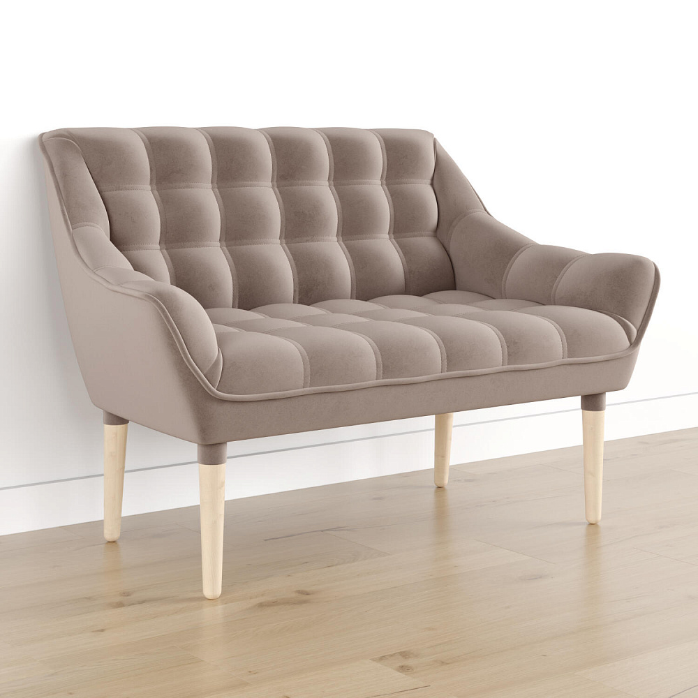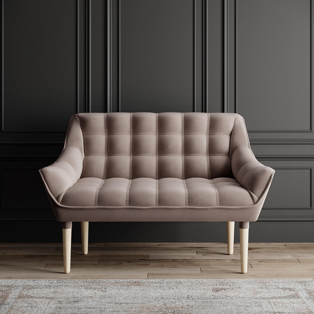 Мини-диван «Блафф» — сочетание визуальной воздушности и легкости за счет объемного канта и высоких деревянных опор. Компактные размеры позволяют гармонично разместить «Блафф» как в просторной гостиной, так и в небольшой кухне. Также, компактность дивана дает возможность легко перемещать его и менять обстановку в помещении. Задняя часть спинки выполнена в обивочной ткани, что позволяет разместить диван в центре комнаты.