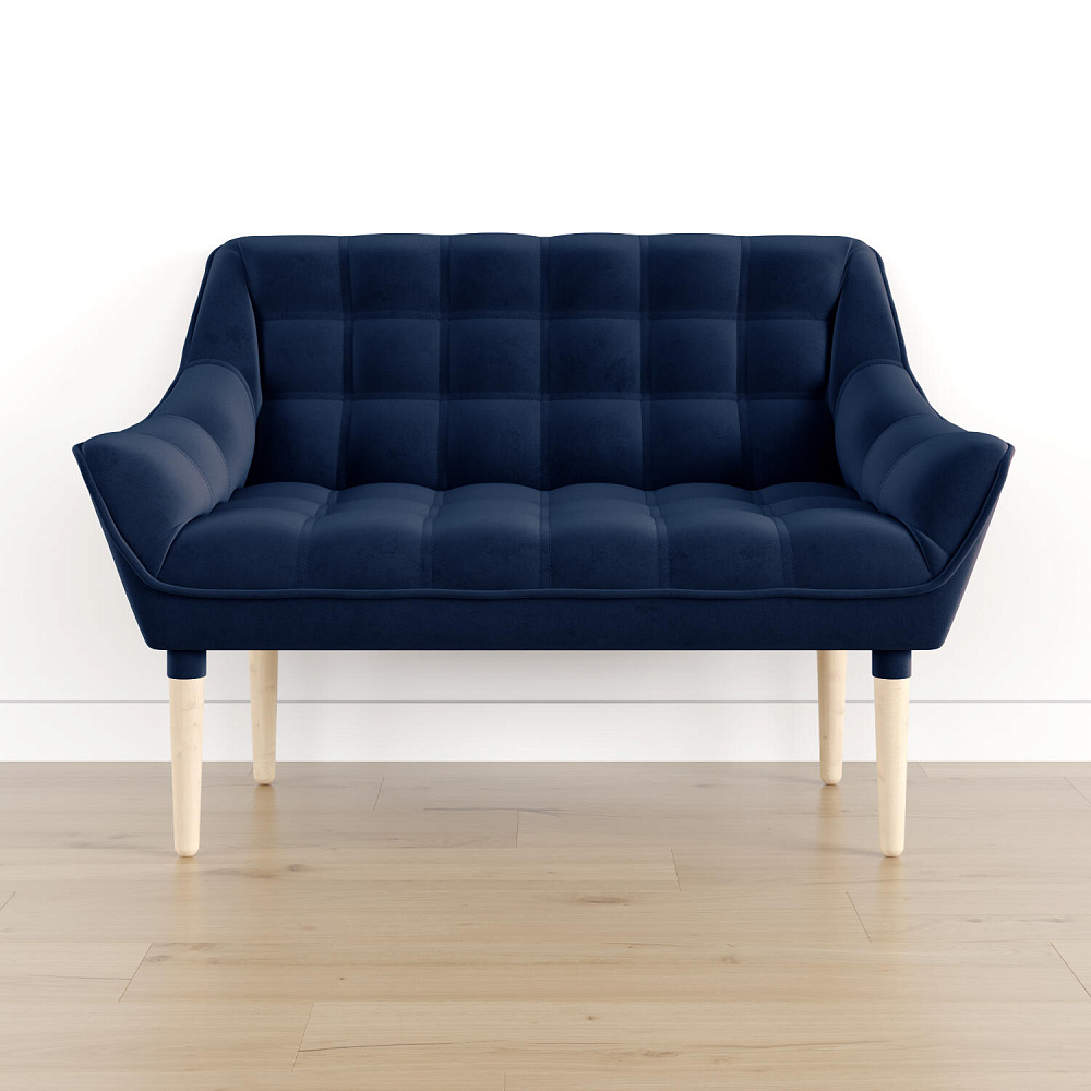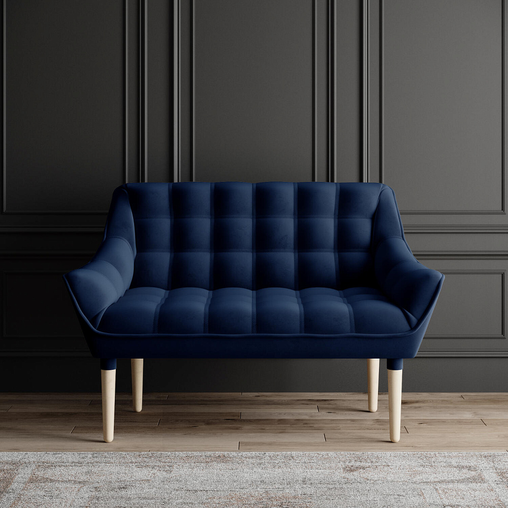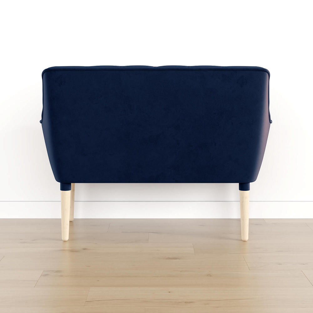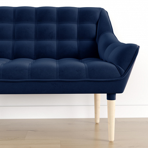 Мини-диван «Блафф» — сочетание визуальной воздушности и легкости за счет объемного канта и высоких деревянных опор. Компактные размеры позволяют гармонично разместить «Блафф» как в просторной гостиной, так и в небольшой кухне. Также, компактность дивана дает возможность легко перемещать его и менять обстановку в помещении. Задняя часть спинки выполнена в обивочной ткани, что позволяет разместить диван в центре комнаты.