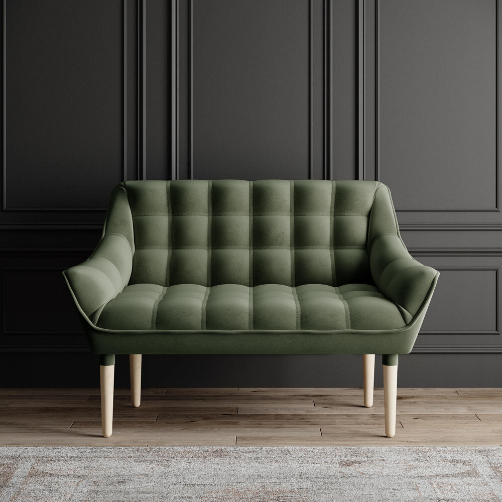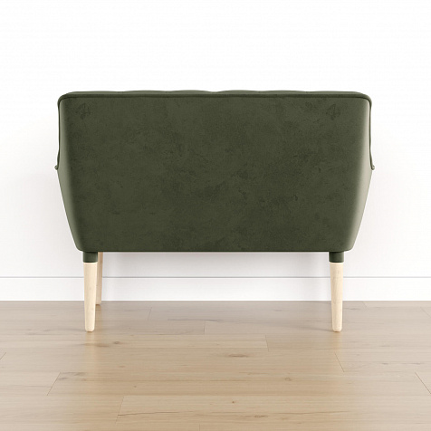 Мини-диван «Блафф» — сочетание визуальной воздушности и легкости за счет объемного канта и высоких деревянных опор. Компактные размеры позволяют гармонично разместить «Блафф» как в просторной гостиной, так и в небольшой кухне. Также, компактность дивана дает возможность легко перемещать его и менять обстановку в помещении. Задняя часть спинки выполнена в обивочной ткани, что позволяет разместить диван в центре комнаты.