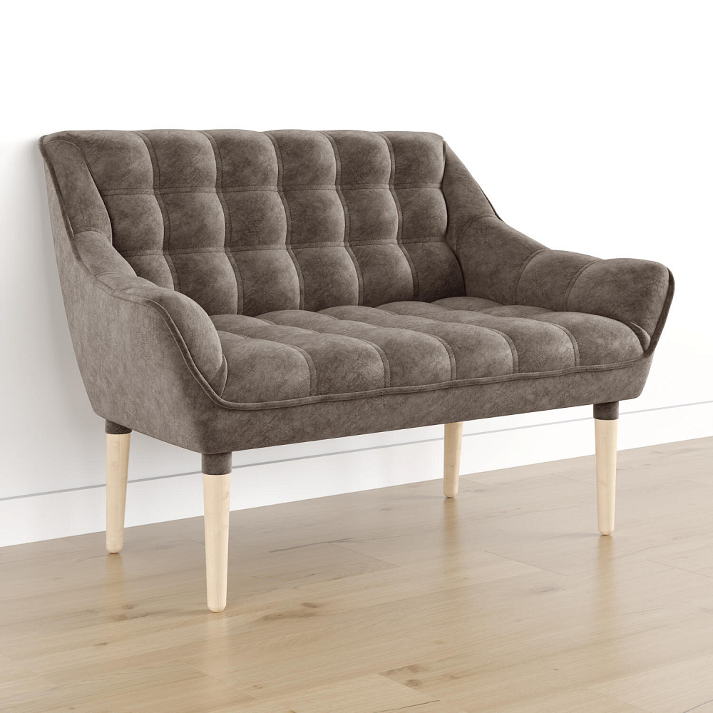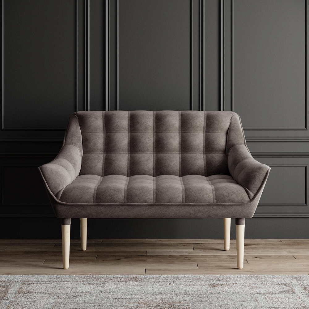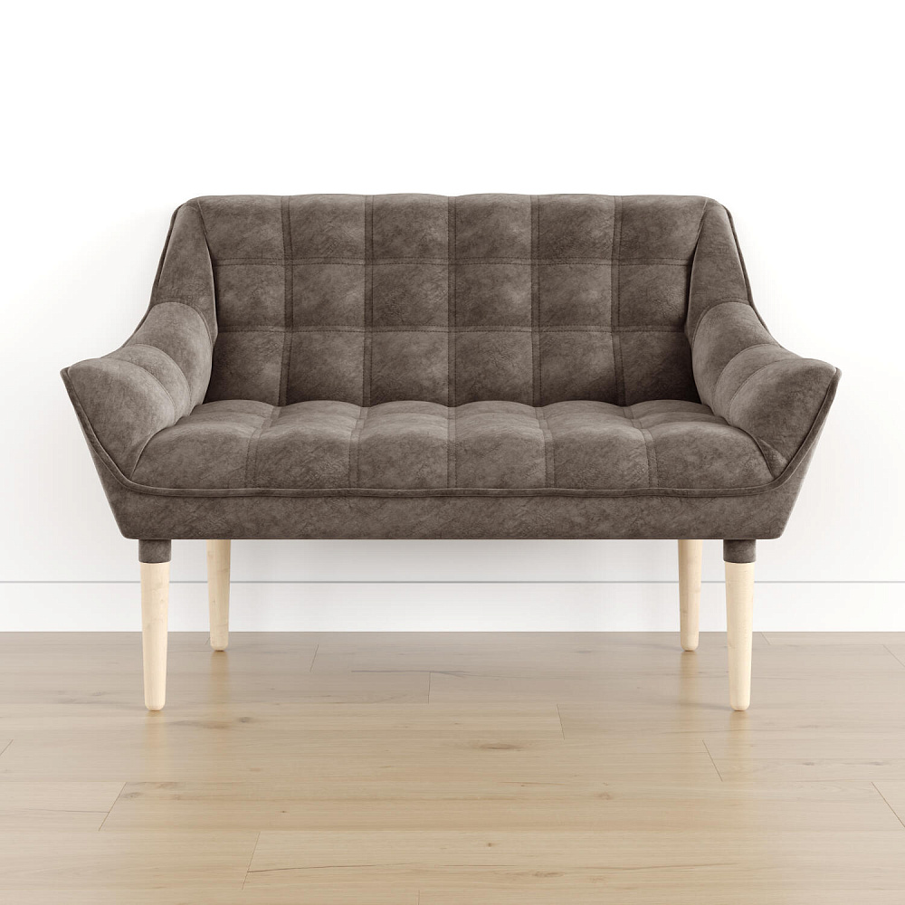 Мини-диван «Блафф» — сочетание визуальной воздушности и легкости за счет объемного канта и высоких деревянных опор. Компактные размеры позволяют гармонично разместить «Блафф» как в просторной гостиной, так и в небольшой кухне. Также, компактность дивана дает возможность легко перемещать его и менять обстановку в помещении. Задняя часть спинки выполнена в обивочной ткани, что позволяет разместить диван в центре комнаты.