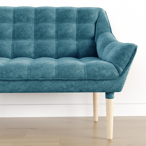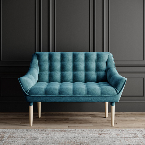Мини-диван «Блафф» — сочетание визуальной воздушности и легкости за счет объемного канта и высоких деревянных опор. Компактные размеры позволяют гармонично разместить «Блафф» как в просторной гостиной, так и в небольшой кухне. Также, компактность дивана дает возможность легко перемещать его и менять обстановку в помещении. Задняя часть спинки выполнена в обивочной ткани, что позволяет разместить диван в центре комнаты.