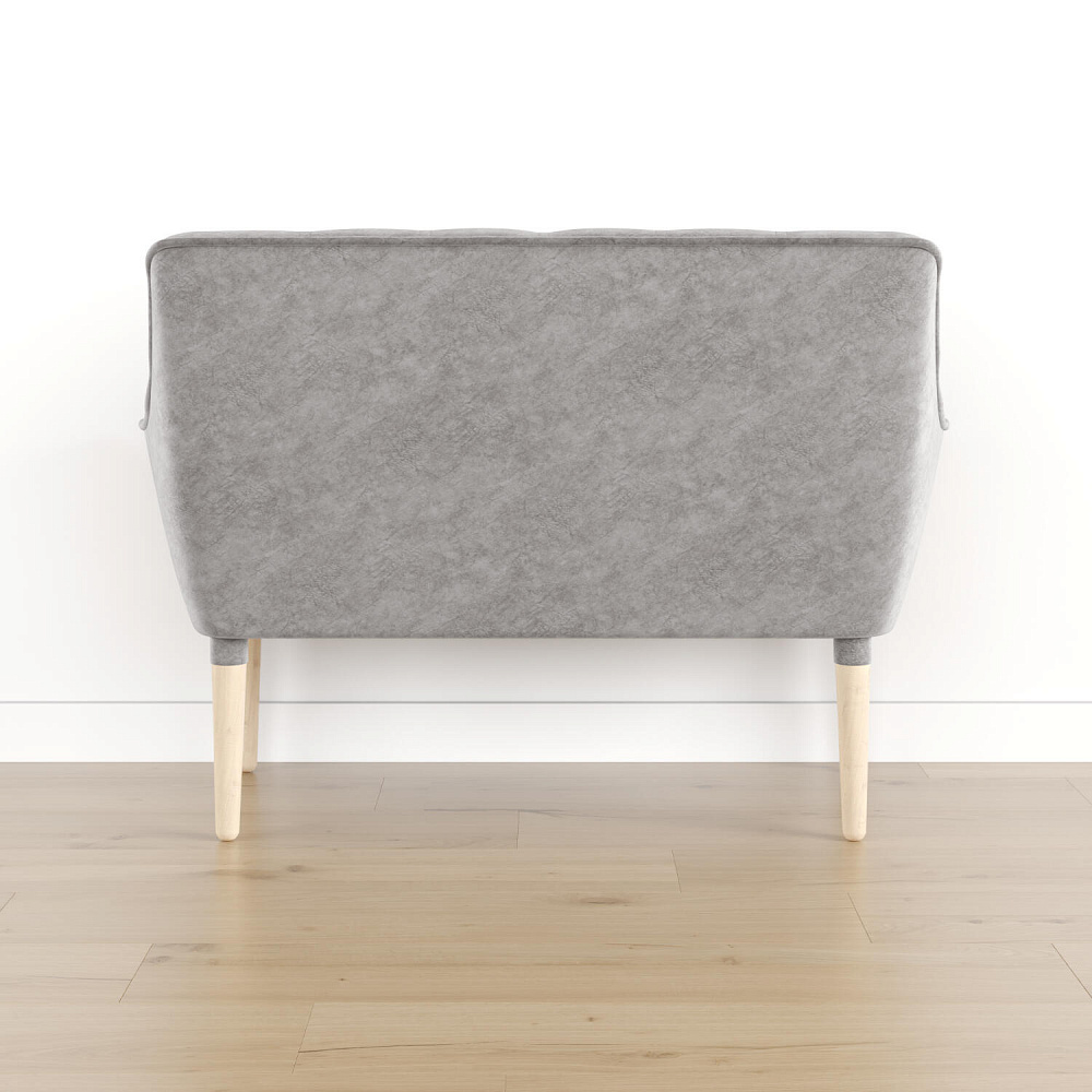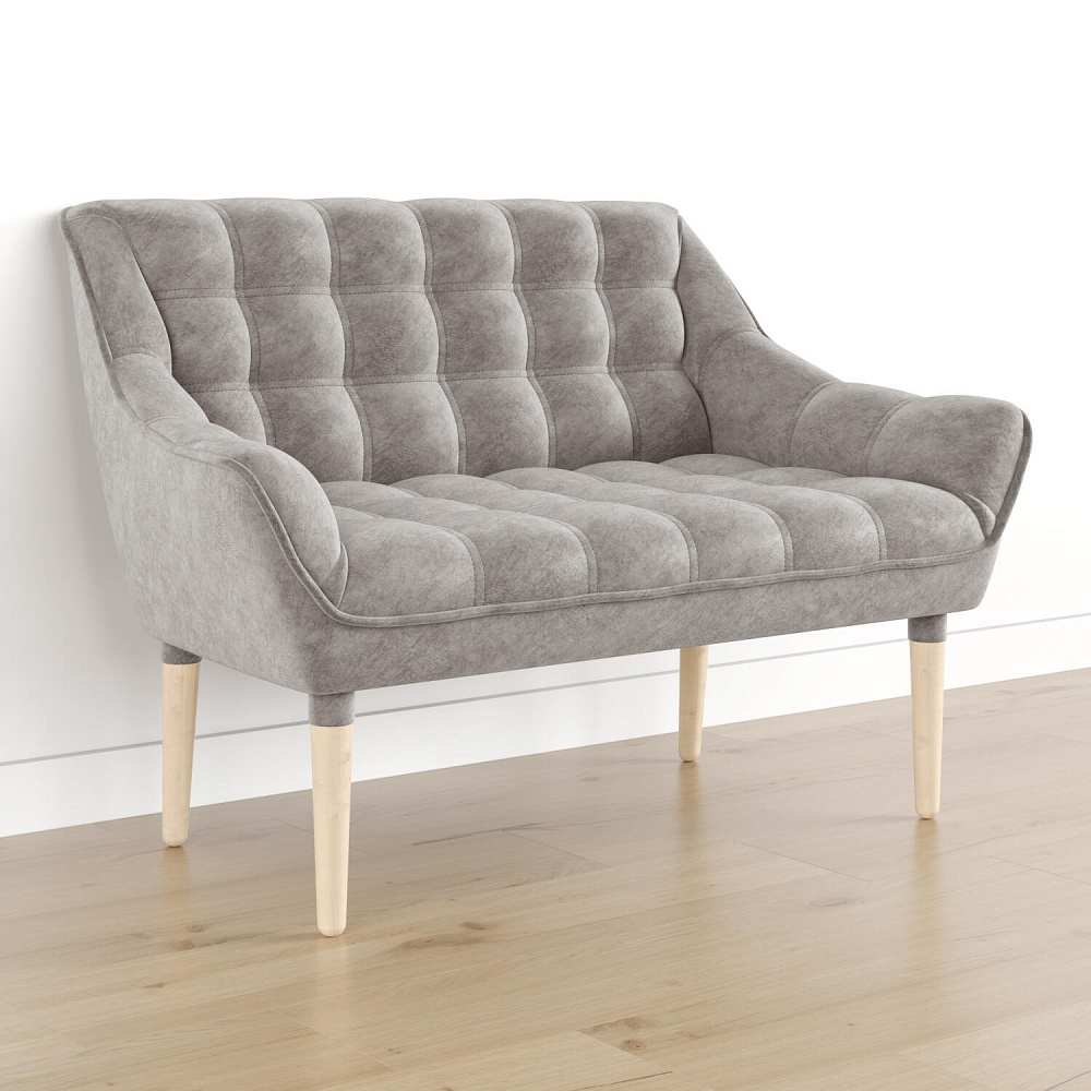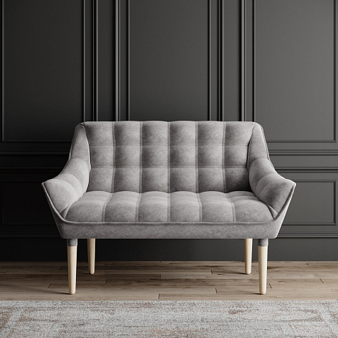 Мини-диван «Блафф» — сочетание визуальной воздушности и легкости за счет объемного канта и высоких деревянных опор. Компактные размеры позволяют гармонично разместить «Блафф» как в просторной гостиной, так и в небольшой кухне. Также, компактность дивана дает возможность легко перемещать его и менять обстановку в помещении. Задняя часть спинки выполнена в обивочной ткани, что позволяет разместить диван в центре комнаты.