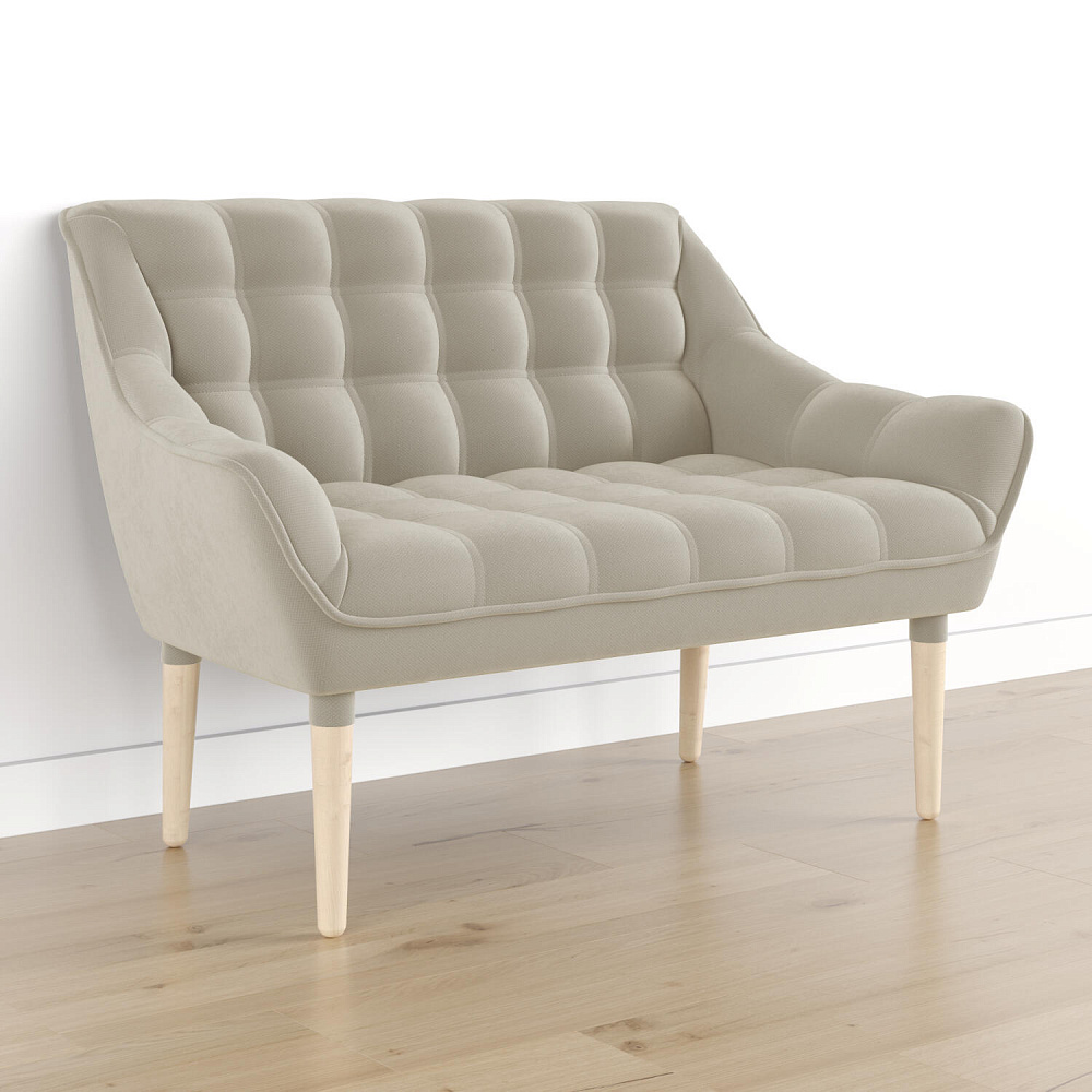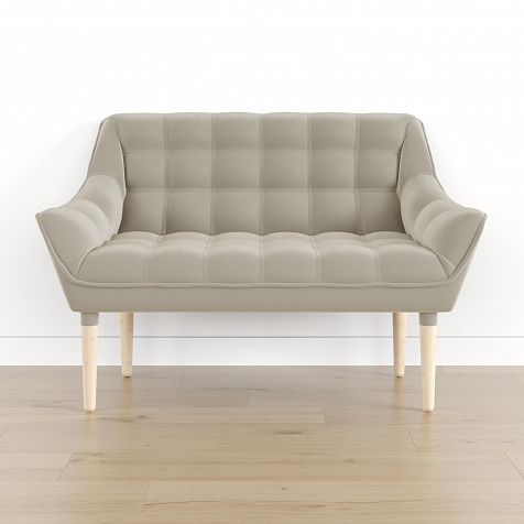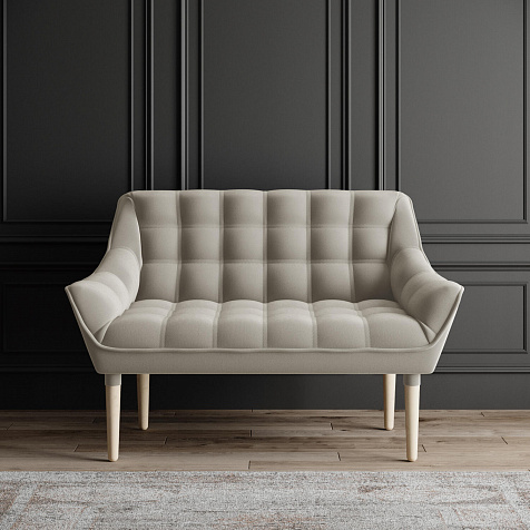 Мини-диван «Блафф» — сочетание визуальной воздушности и легкости за счет объемного канта и высоких деревянных опор. Компактные размеры позволяют гармонично разместить «Блафф» как в просторной гостиной, так и в небольшой кухне. Также, компактность дивана дает возможность легко перемещать его и менять обстановку в помещении. Задняя часть спинки выполнена в обивочной ткани, что позволяет разместить диван в центре комнаты.