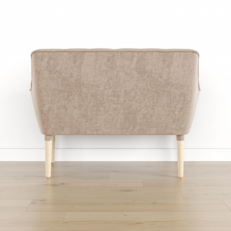 Мини-диван «Блафф» — сочетание визуальной воздушности и легкости за счет объемного канта и высоких деревянных опор. Компактные размеры позволяют гармонично разместить «Блафф» как в просторной гостиной, так и в небольшой кухне. Также, компактность дивана дает возможность легко перемещать его и менять обстановку в помещении. Задняя часть спинки выполнена в обивочной ткани, что позволяет разместить диван в центре комнаты.