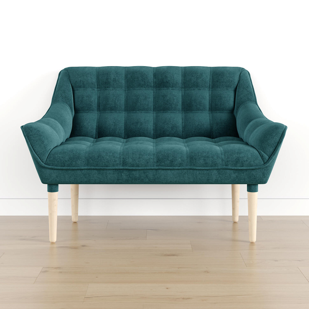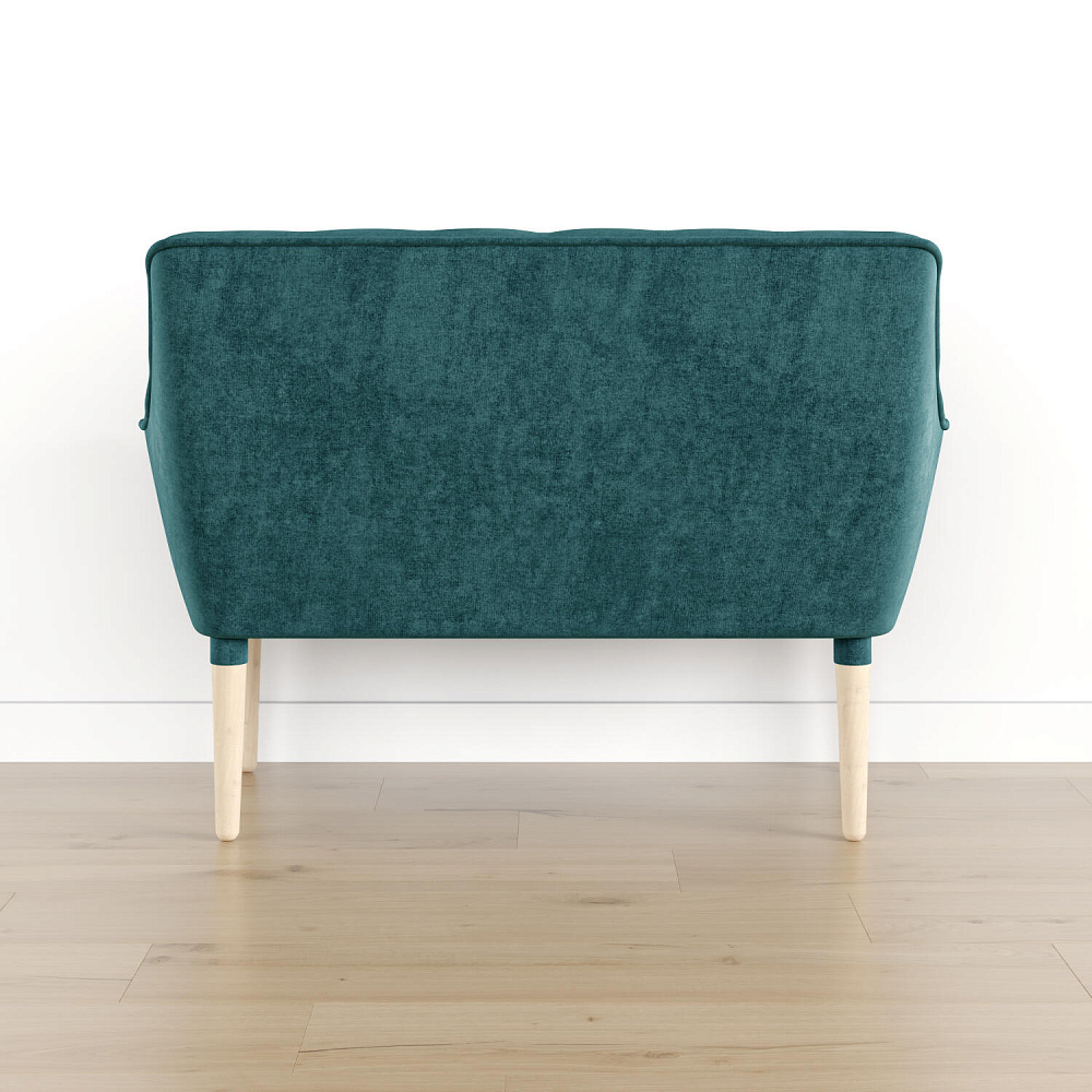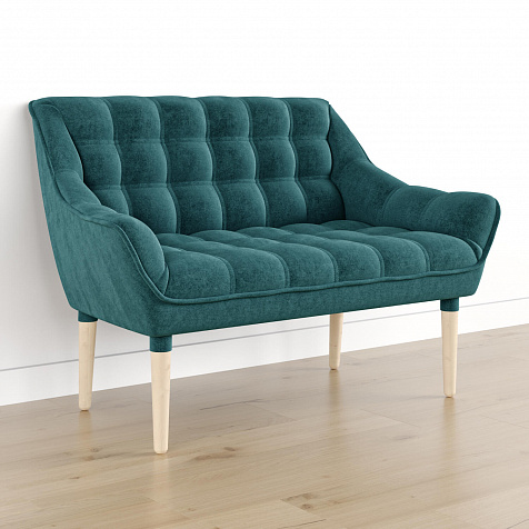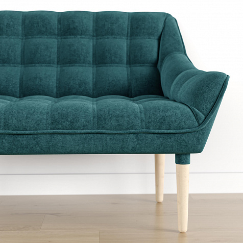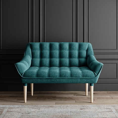 Мини-диван «Блафф» — сочетание визуальной воздушности и легкости за счет объемного канта и высоких деревянных опор. Компактные размеры позволяют гармонично разместить «Блафф» как в просторной гостиной, так и в небольшой кухне. Также, компактность дивана дает возможность легко перемещать его и менять обстановку в помещении. Задняя часть спинки выполнена в обивочной ткани, что позволяет разместить диван в центре комнаты.
