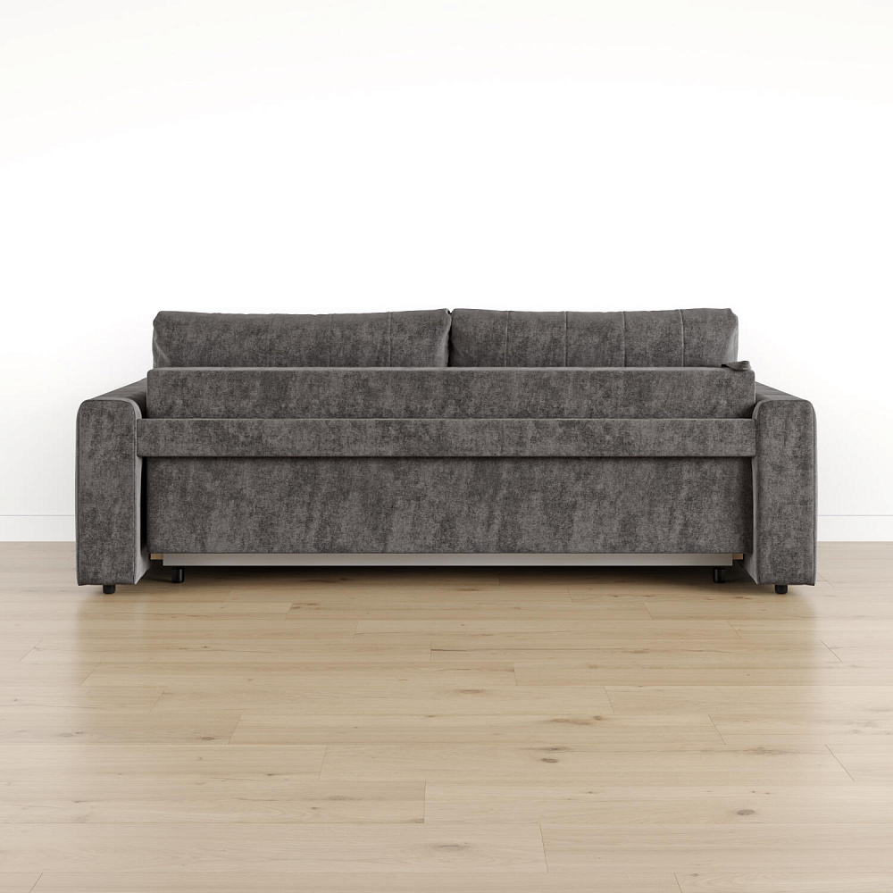 Механизм трансформации «Еврокнижка». Диван легко раскладывается — нужно выкатить вперед сиденье и опустить спинку. Удобен механизм ещё тем, что двигается только передняя часть, поэтому отодвигать диван от стены не требуется.