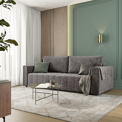 Прямой диван «Хаген» — идеальное сочетание простоты, спокойствия и комфорта. Пропорциональные и симметричные формы модели украшены легкой строчкой на сиденье и спинке, что подчеркивает лаконичный образ, который идеально пойдет для любого современного интерьера. Диван с компактными размерами не займёт много места в помещении, а встроенный бельевой короб сэкономит место в шкафу. В два легких движения «Хаген» трансформируется в кровать для ежедневного сна с полутораспальным местом.
