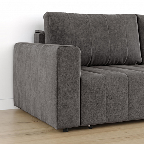 Обратная сторона спинки в обивочной ткани. Диван можно поставить вплотную к стене или посреди комнаты для зонирования пространства.