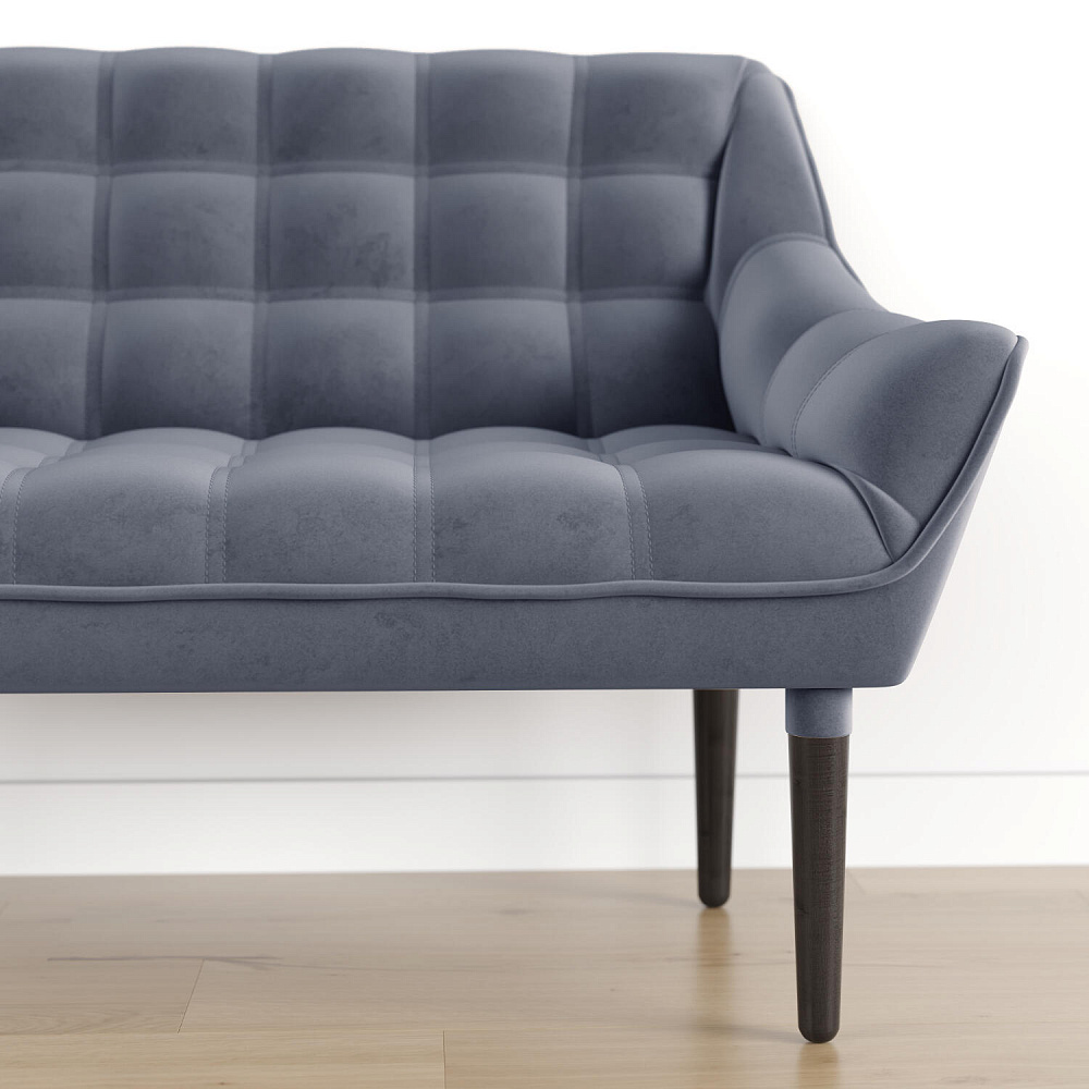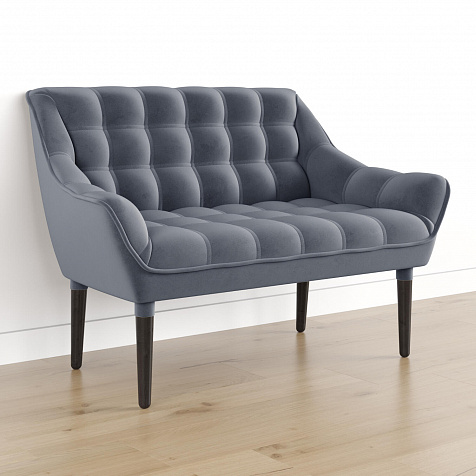 Мини-диван «Блафф» — сочетание визуальной воздушности и легкости за счет объемного канта и высоких деревянных опор. Компактные размеры позволяют гармонично разместить «Блафф» как в просторной гостиной, так и в небольшой кухне. Также, компактность дивана дает возможность легко перемещать его и менять обстановку в помещении. Задняя часть спинки выполнена в обивочной ткани, что позволяет разместить диван в центре комнаты.