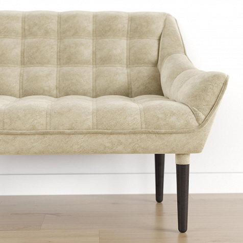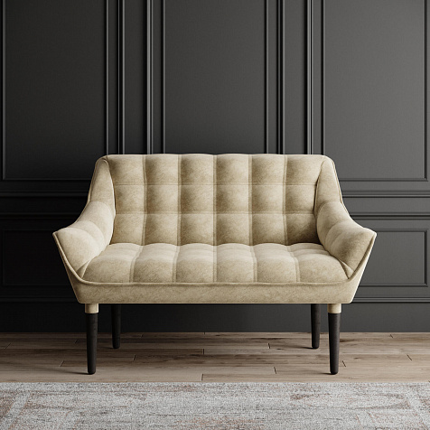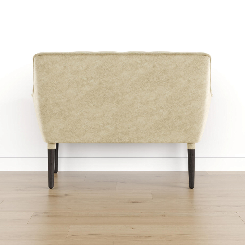 Мини-диван «Блафф» — сочетание визуальной воздушности и легкости за счет объемного канта и высоких деревянных опор. Компактные размеры позволяют гармонично разместить «Блафф» как в просторной гостиной, так и в небольшой кухне. Также, компактность дивана дает возможность легко перемещать его и менять обстановку в помещении. Задняя часть спинки выполнена в обивочной ткани, что позволяет разместить диван в центре комнаты.
