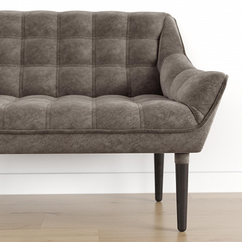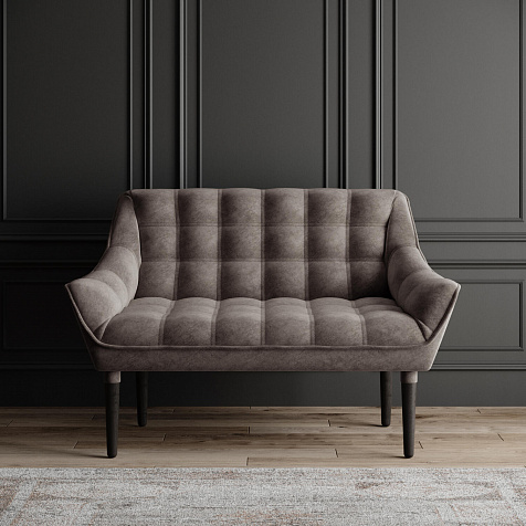 Мини-диван «Блафф» — сочетание визуальной воздушности и легкости за счет объемного канта и высоких деревянных опор. Компактные размеры позволяют гармонично разместить «Блафф» как в просторной гостиной, так и в небольшой кухне. Также, компактность дивана дает возможность легко перемещать его и менять обстановку в помещении. Задняя часть спинки выполнена в обивочной ткани, что позволяет разместить диван в центре комнаты.