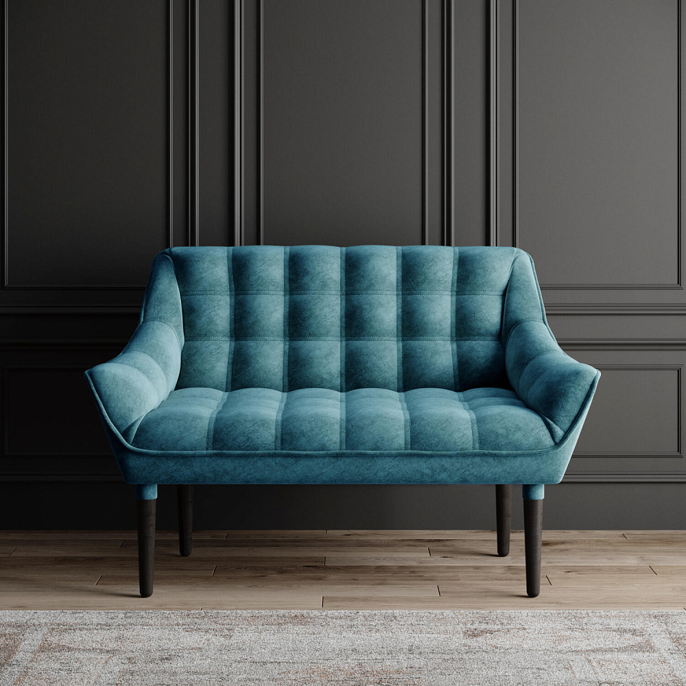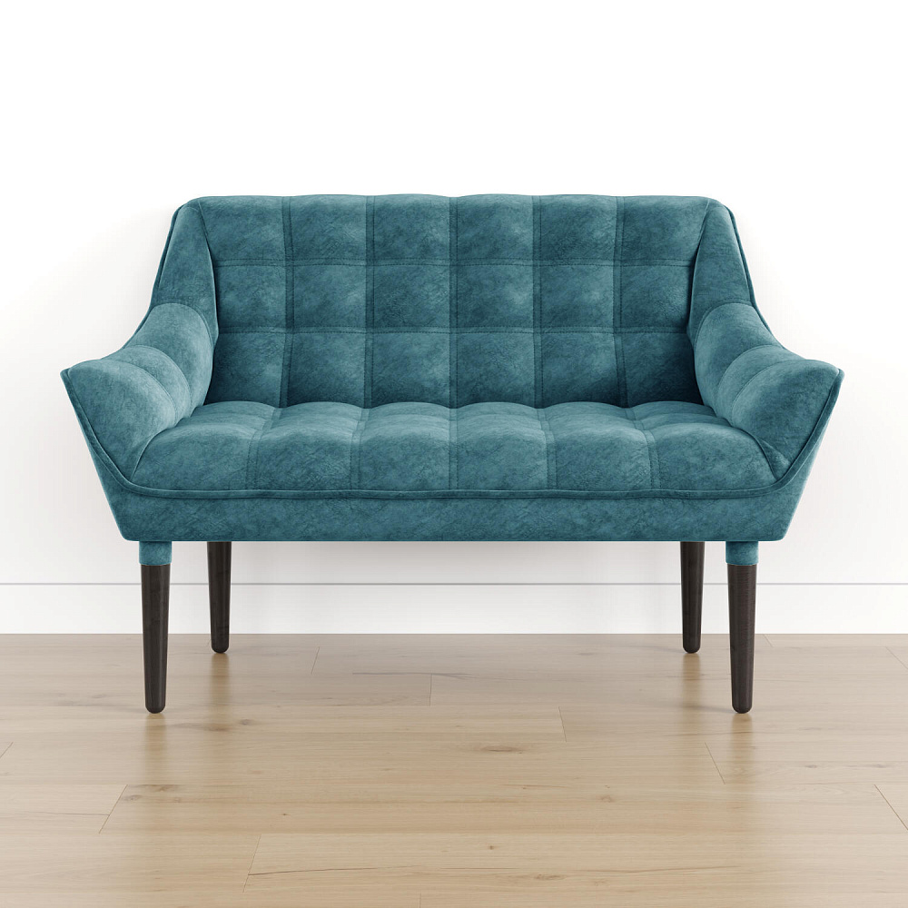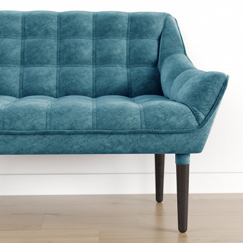 Мини-диван «Блафф» — сочетание визуальной воздушности и легкости за счет объемного канта и высоких деревянных опор. Компактные размеры позволяют гармонично разместить «Блафф» как в просторной гостиной, так и в небольшой кухне. Также, компактность дивана дает возможность легко перемещать его и менять обстановку в помещении. Задняя часть спинки выполнена в обивочной ткани, что позволяет разместить диван в центре комнаты.