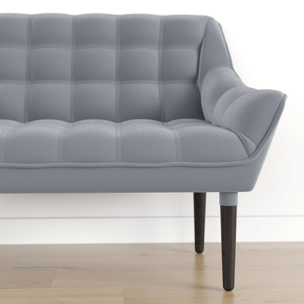Мини-диван «Блафф» — сочетание визуальной воздушности и легкости за счет объемного канта и высоких деревянных опор. Компактные размеры позволяют гармонично разместить «Блафф» как в просторной гостиной, так и в небольшой кухне. Также, компактность дивана дает возможность легко перемещать его и менять обстановку в помещении. Задняя часть спинки выполнена в обивочной ткани, что позволяет разместить диван в центре комнаты.