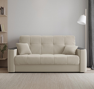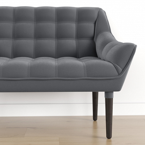Мини-диван «Блафф» — сочетание визуальной воздушности и легкости за счет объемного канта и высоких деревянных опор. Компактные размеры позволяют гармонично разместить «Блафф» как в просторной гостиной, так и в небольшой кухне. Также, компактность дивана дает возможность легко перемещать его и менять обстановку в помещении. Задняя часть спинки выполнена в обивочной ткани, что позволяет разместить диван в центре комнаты.