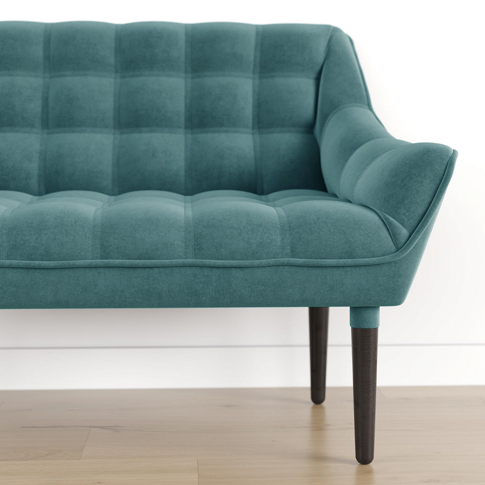 Мини-диван «Блафф» — сочетание визуальной воздушности и легкости за счет объемного канта и высоких деревянных опор. Компактные размеры позволяют гармонично разместить «Блафф» как в просторной гостиной, так и в небольшой кухне. Также, компактность дивана дает возможность легко перемещать его и менять обстановку в помещении. Задняя часть спинки выполнена в обивочной ткани, что позволяет разместить диван в центре комнаты.