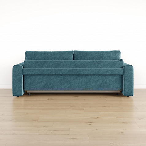 Обратная сторона спинки в обивочной ткани. Диван можно поставить вплотную к стене или посреди комнаты для зонирования пространства.