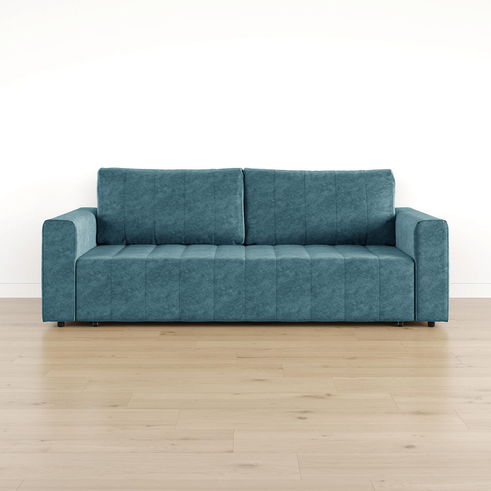 Прямой диван «Хаген» — идеальное сочетание простоты, спокойствия и комфорта. Пропорциональные и симметричные формы модели украшены легкой строчкой на сиденье и спинке, что подчеркивает лаконичный образ, который идеально пойдет для любого современного интерьера. Диван с компактными размерами не займёт много места в помещении, а встроенный бельевой короб сэкономит место в шкафу. В два легких движения «Хаген» трансформируется в кровать для ежедневного сна с полутораспальным местом.
