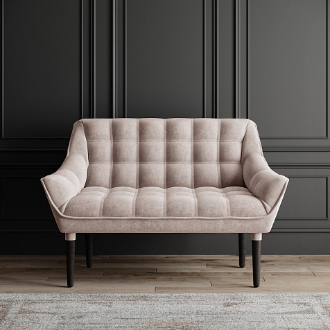 Мини-диван «Блафф» — сочетание визуальной воздушности и легкости за счет объемного канта и высоких деревянных опор. Компактные размеры позволяют гармонично разместить «Блафф» как в просторной гостиной, так и в небольшой кухне. Также, компактность дивана дает возможность легко перемещать его и менять обстановку в помещении. Задняя часть спинки выполнена в обивочной ткани, что позволяет разместить диван в центре комнаты.