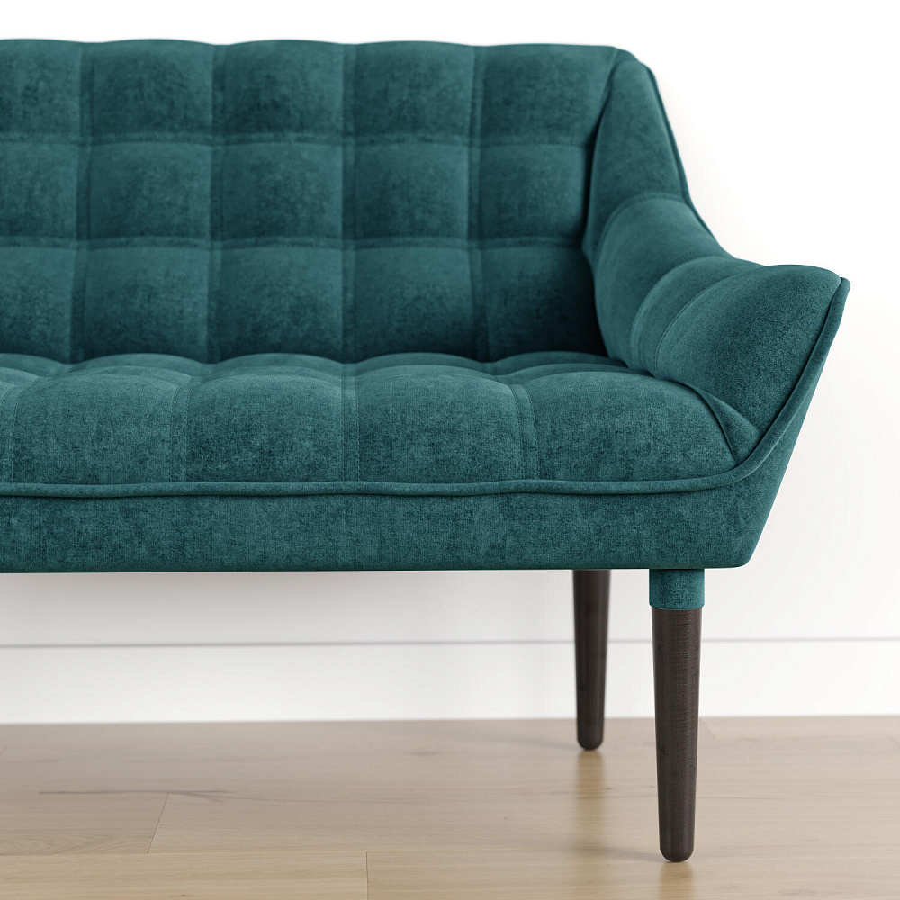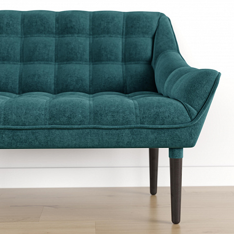Мини-диван «Блафф» — сочетание визуальной воздушности и легкости за счет объемного канта и высоких деревянных опор. Компактные размеры позволяют гармонично разместить «Блафф» как в просторной гостиной, так и в небольшой кухне. Также, компактность дивана дает возможность легко перемещать его и менять обстановку в помещении. Задняя часть спинки выполнена в обивочной ткани, что позволяет разместить диван в центре комнаты.