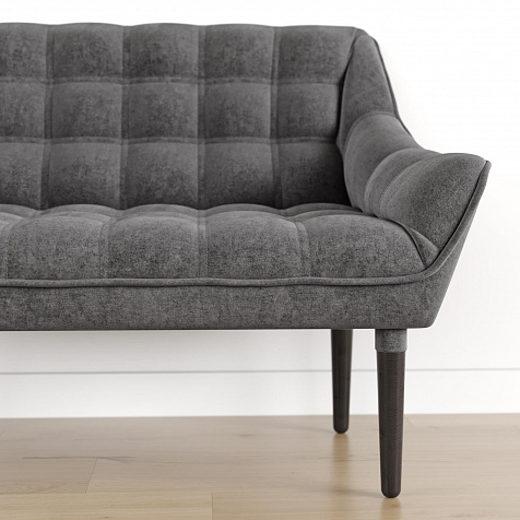 Мини-диван «Блафф» — сочетание визуальной воздушности и легкости за счет объемного канта и высоких деревянных опор. Компактные размеры позволяют гармонично разместить «Блафф» как в просторной гостиной, так и в небольшой кухне. Также, компактность дивана дает возможность легко перемещать его и менять обстановку в помещении. Задняя часть спинки выполнена в обивочной ткани, что позволяет разместить диван в центре комнаты.