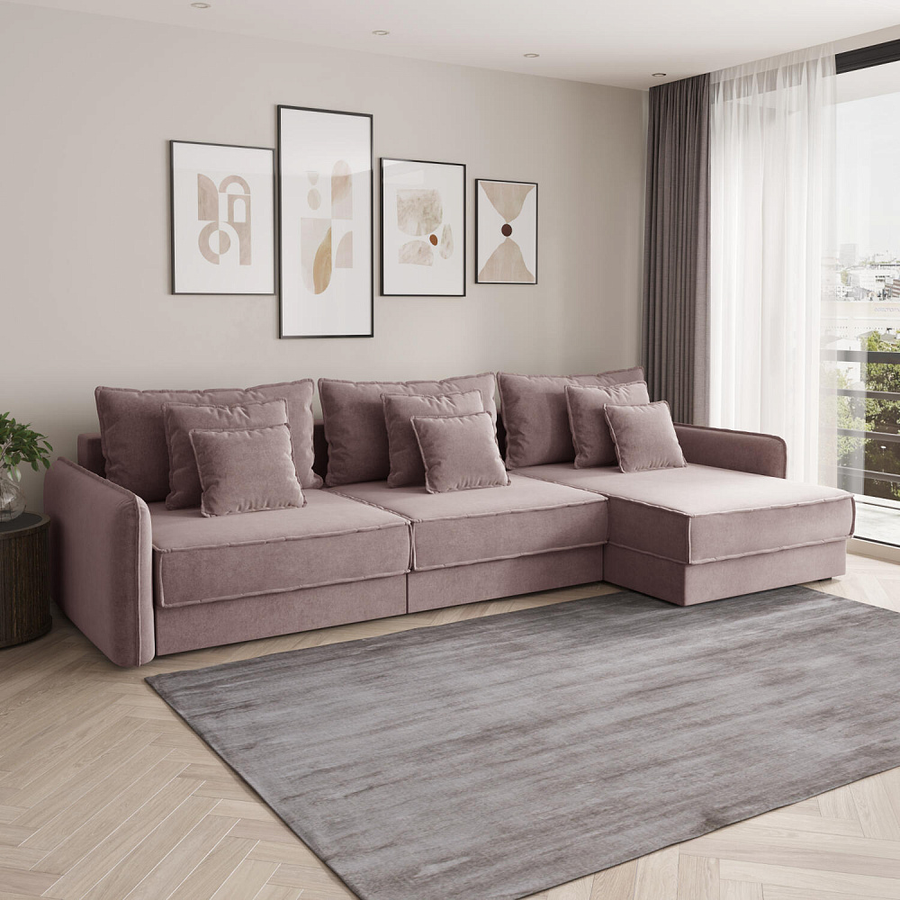 - Девять подушек в комплекте. 3 приспинных и 6 декоративных подушек разных размеров позволят скорректировать глубину посадки.