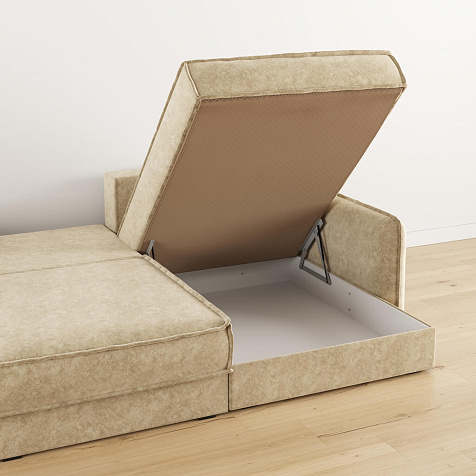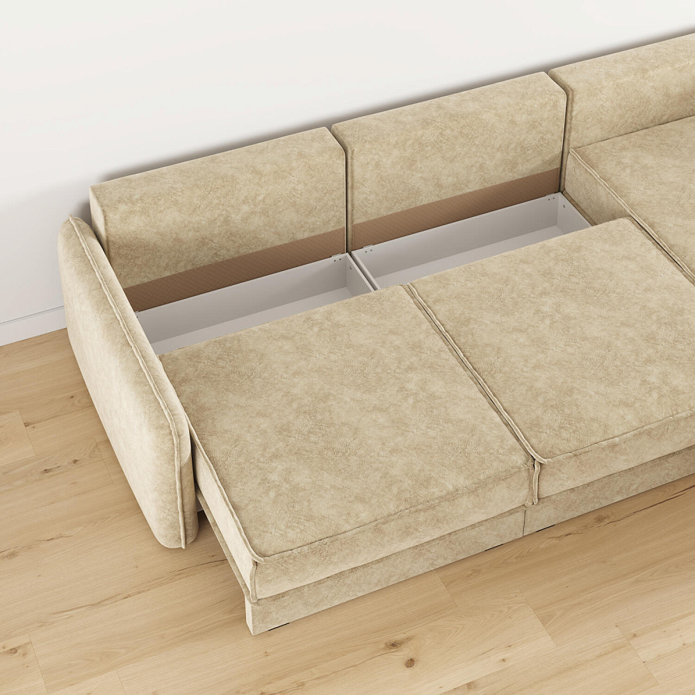 - Три короба для белья. В каждой секции и оттоманке предусмотрен вместительный короб для хранения постельного белья и других вещей.