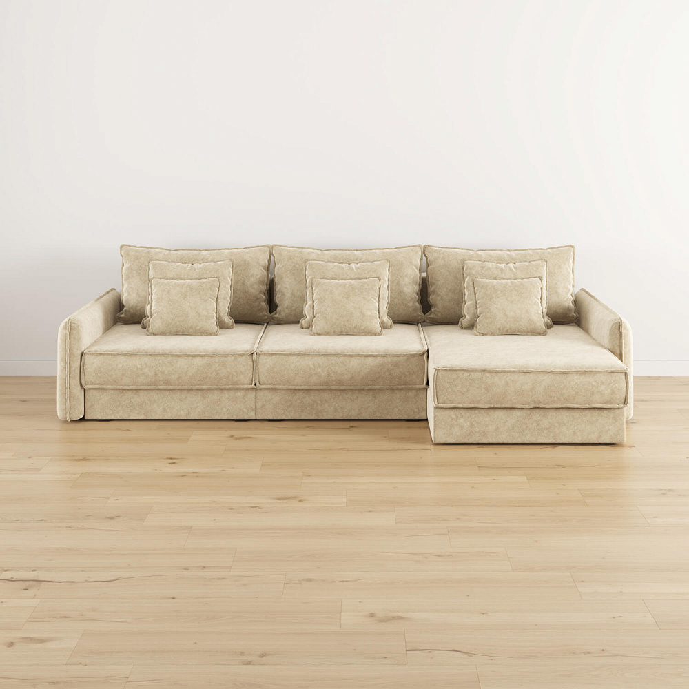 - Девять подушек в комплекте. 3 приспинных и 6 декоративных подушек разных размеров позволят скорректировать глубину посадки.