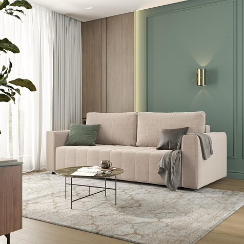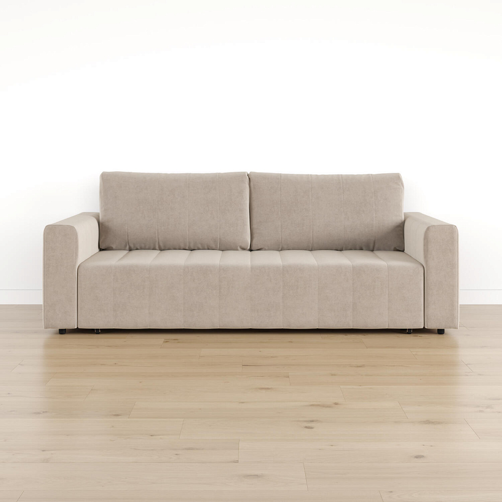 Прямой диван «Хаген» — идеальное сочетание простоты, спокойствия и комфорта. Пропорциональные и симметричные формы модели украшены легкой строчкой на сиденье и спинке, что подчеркивает лаконичный образ, который идеально пойдет для любого современного интерьера. Диван с компактными размерами не займёт много места в помещении, а встроенный бельевой короб сэкономит место в шкафу. В два легких движения «Хаген» трансформируется в кровать для ежедневного сна с полутораспальным местом.