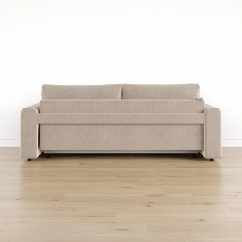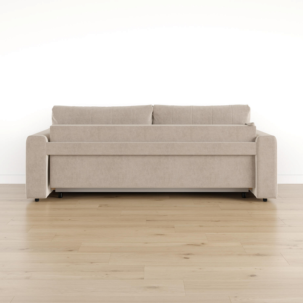 Обратная сторона спинки в обивочной ткани. Диван можно поставить вплотную к стене или посреди комнаты для зонирования пространства.