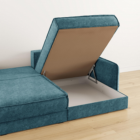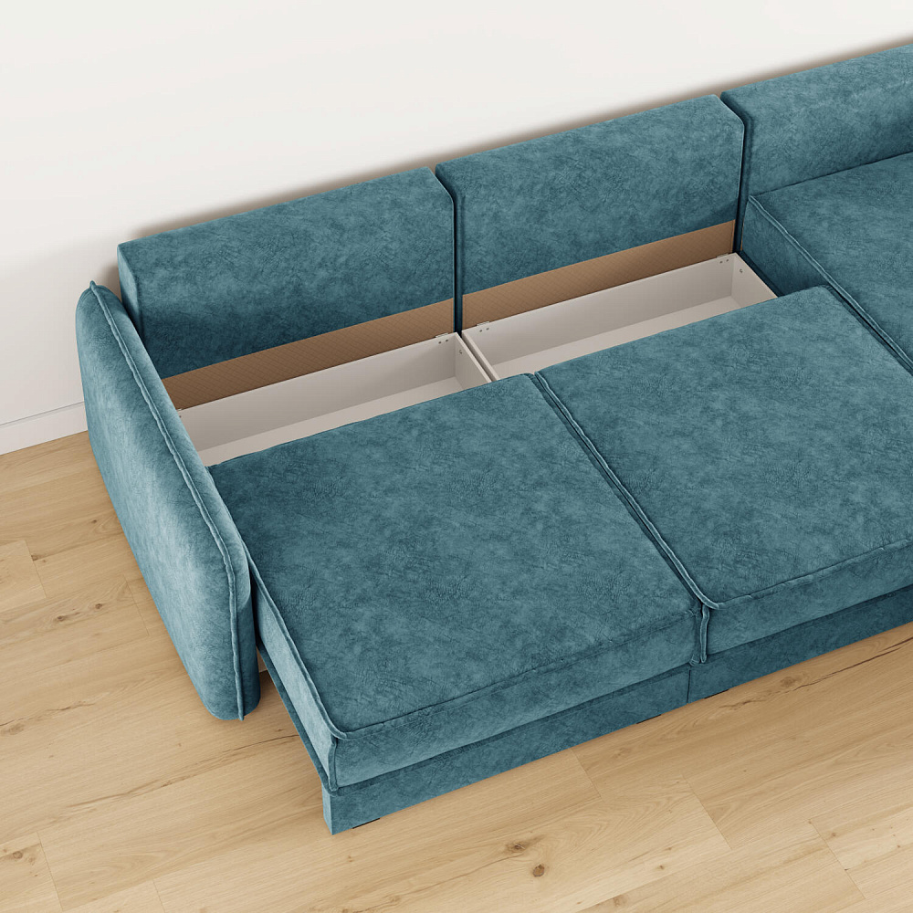 - Три короба для белья. В каждой секции и оттоманке предусмотрен вместительный короб для хранения постельного белья и других вещей.