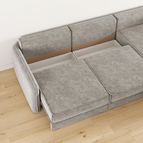 - Три короба для белья. В каждой секции и оттоманке предусмотрен вместительный короб для хранения постельного белья и других вещей.