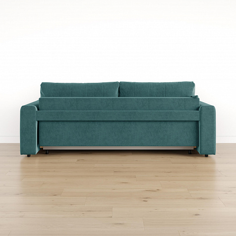 Обратная сторона спинки в обивочной ткани. Диван можно поставить вплотную к стене или посреди комнаты для зонирования пространства.