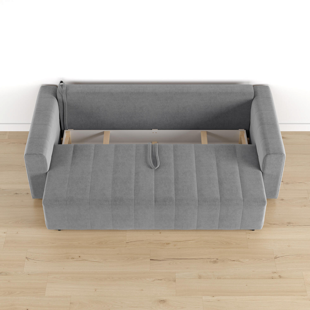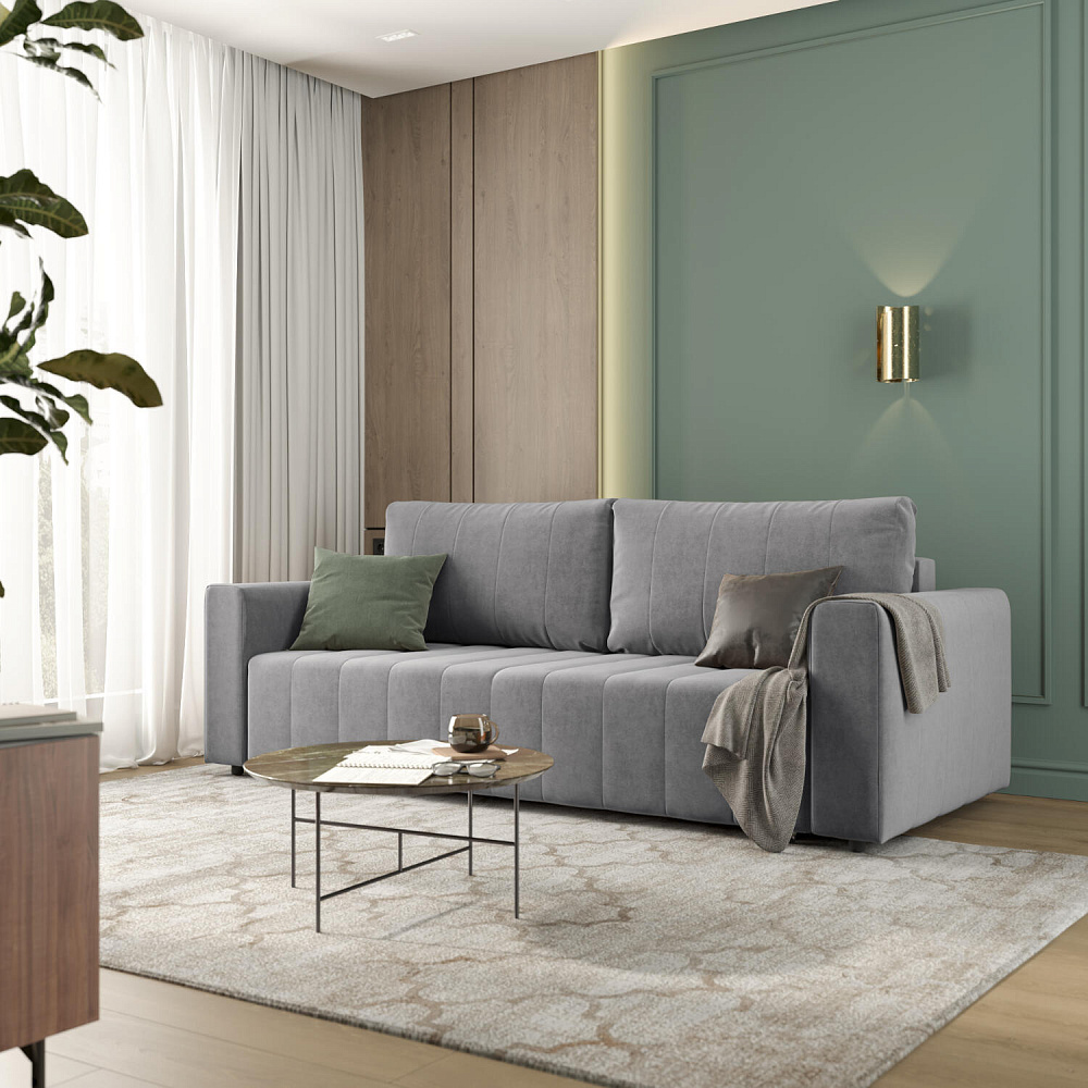 Прямой диван «Хаген» — идеальное сочетание простоты, спокойствия и комфорта. Пропорциональные и симметричные формы модели украшены легкой строчкой на сиденье и спинке, что подчеркивает лаконичный образ, который идеально пойдет для любого современного интерьера. Диван с компактными размерами не займёт много места в помещении, а встроенный бельевой короб сэкономит место в шкафу. В два легких движения «Хаген» трансформируется в кровать для ежедневного сна с полутораспальным местом.